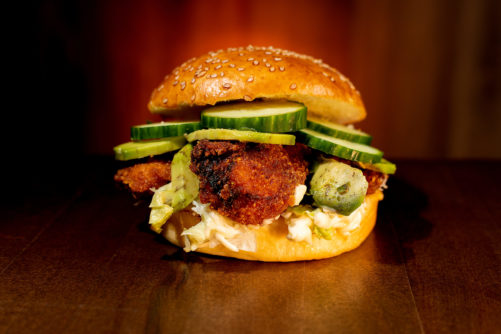 filet de poulet croustillant maison ,avocats , salade tomate concombre sauce mayonnaise.